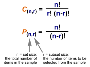 “What is the number of possible combinations of r items from a total of n items”.